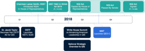 While the. NQI was signed into law in 2018 momentum was not truly gained until 2020. Several federal agencies including the National Science Foundation and Department of Energy established new quantum research centers within the US.